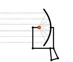 Se il microfono parabolico è opportunamente orientato, le onde sonore che colpiscono il piatto della parabola vengono tutte dirottate nel fuoco, dove è posto, appunto, un microfono. Il segnale che raggiunge il microfono risulta così molto amplificato rispetto a quello che arriverebbe a un microfono privo del piatto parabolico. E' sufficiente collegare il microfono a delle cuffie per riuscire a sentire anche rumori molto deboli e lontani. |